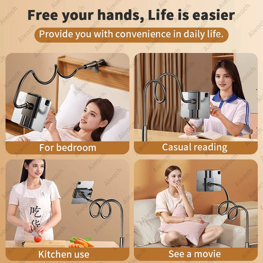 Tablet Stand Holder, Tablet Holder Metal+Abs Adjustable 360° Rotating Arm for 4.7-11" Ipad/Tablets Desk/Bed Mount{gooseneck}