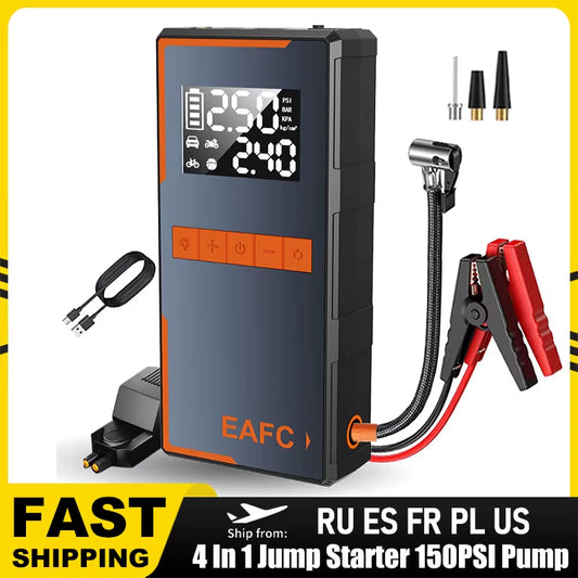 All-in -one Car Emergency Jump Starter & Air Pump, 2025 Newest 1200A Peak 150PSI Tire Inflator with LED Light & Power Bank