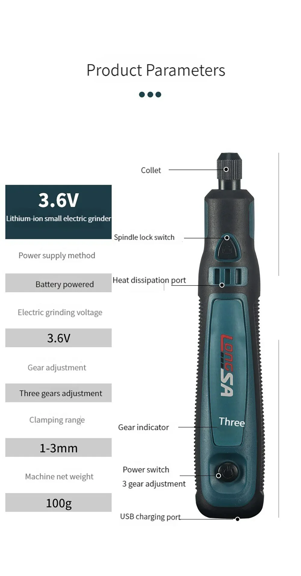 Clamping range: 1-3mm(The default 3mm chuck)