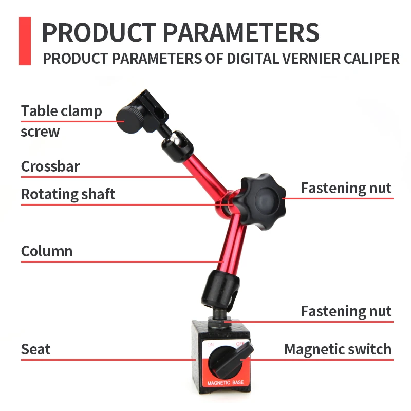 Features: Powerful magnetic base holder with magnet switch. The flexible and sturdy rotary joint can adjust the direction and position arbitrarily. The V-groove base can be installed on a cylindrical surface.