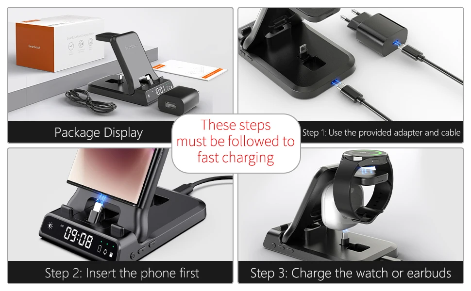 Charging Station for S25 Ultra S24+ S23 Z Flip 7 Z Fold 6 Charger for Galaxy Watch 8 7 6 for Buds 3 Pro
